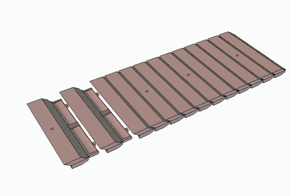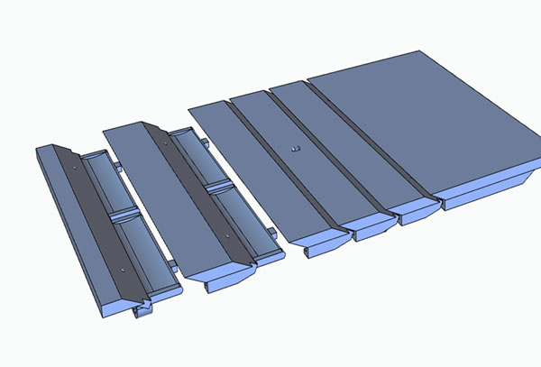 The Smart Blade grate system consists of individual interlocking grate elements (Smart Blades) that are placed on different types of frames and fastened with rods. The name Smart Blades is based on the diverse use of this system for various types of coolers. Using the Coanda effect, Smart Blades generate horizontal air jets for even aeration of the grate surface and thus ensure a kind of air cushion between the grate surface and the clinker.