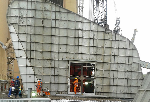 CemProTec has been building kiln hoods for gas velocities <4 m/s for many years. This significantly reduced dust recirculation and the associated heat losses through reheating. Another side effect is cleaner tertiary air ducts and less wear on the refractory. The demand for large kiln hoods for low gas velocities is remarkably high.