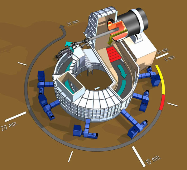 The Revolving Disc Cooler is nothing less than the ultimate clinker cooler and perfectly suitable for Oxyfuel. The perfect cross-flow heat exchanger, mechanically robust and highly energy-efficient. It is the no-frills design that convinces in every detail. The design for different capacities is freely scalable and requires no compromises.
