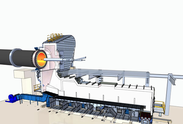 - A large kiln hood ensures very low gas velocities and a "clear" flame at the burner. Less dust reduces refractory wear