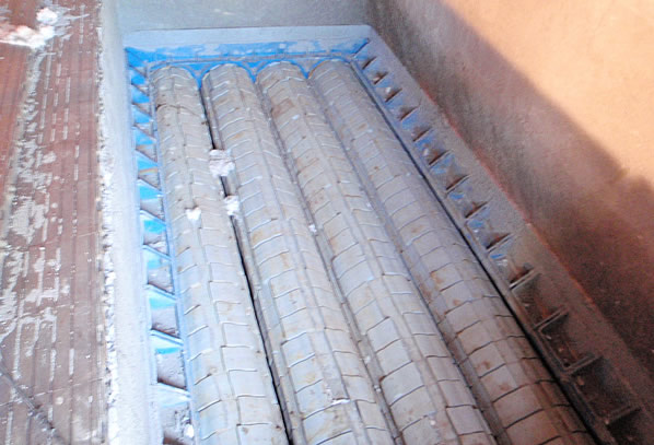 CemProTec has developed a corresponding type of static grate, the CDS (Clinker Distribution System). The aim is to achieve high air density, that means to provide a high air volume for a specific grate area with the lowest power consumption.